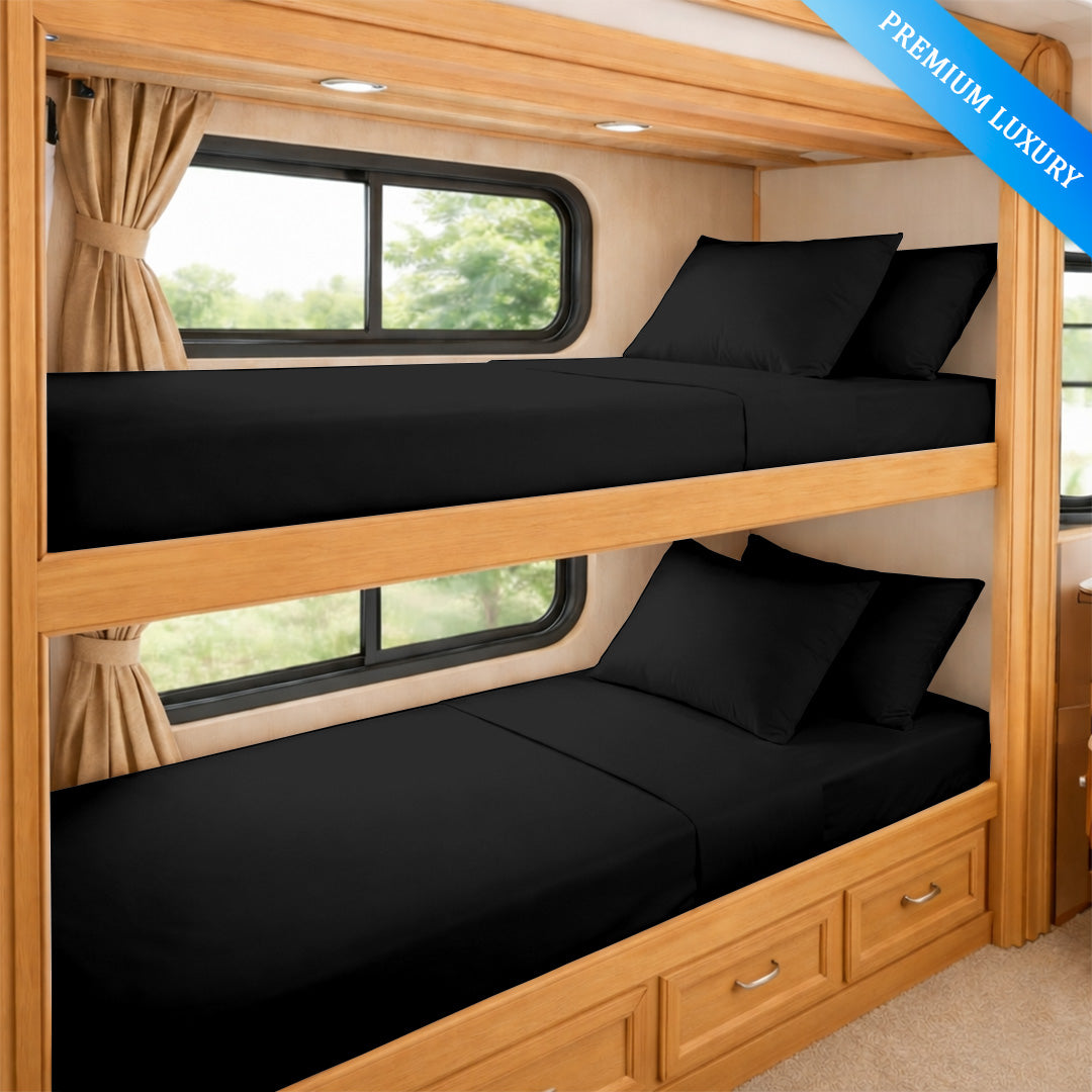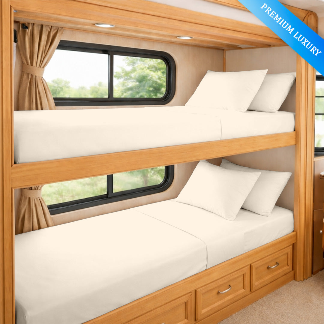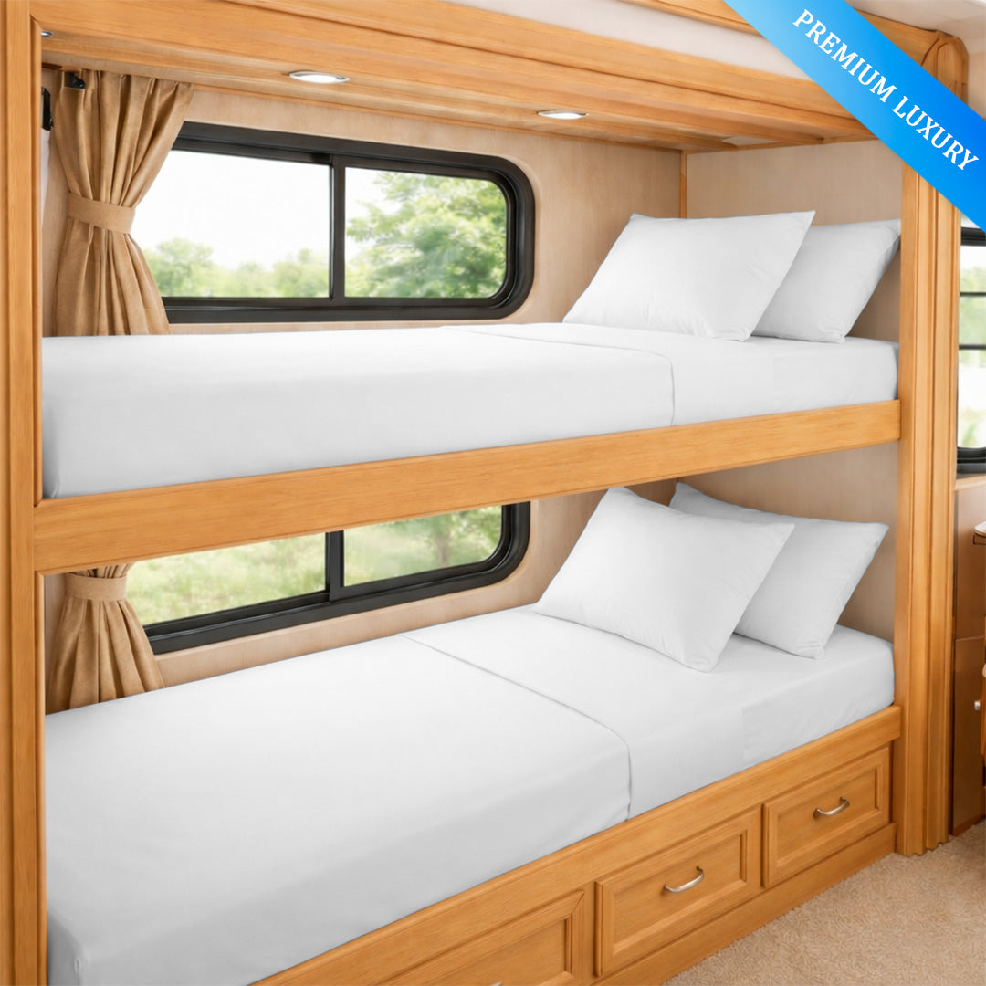 RV mattresses often have different lengths and widths than residential beds, so standard sheets can bunch or slip. RV bed sheets and bed sheets for RV mattress sizes are made specifically for camper and motorhome dimensions, ensuring a secure and smooth fit.