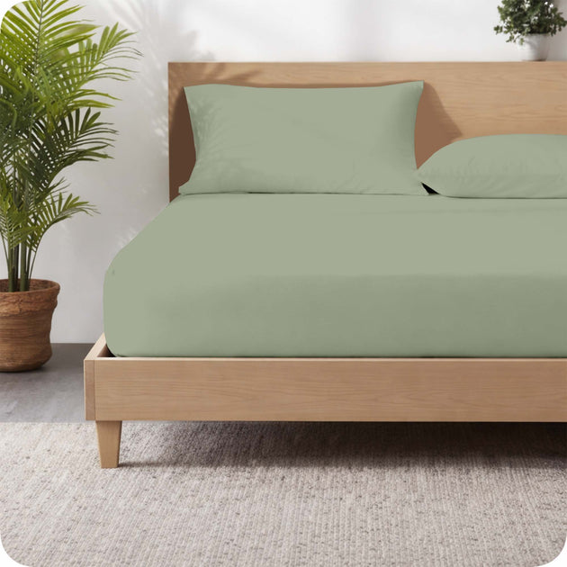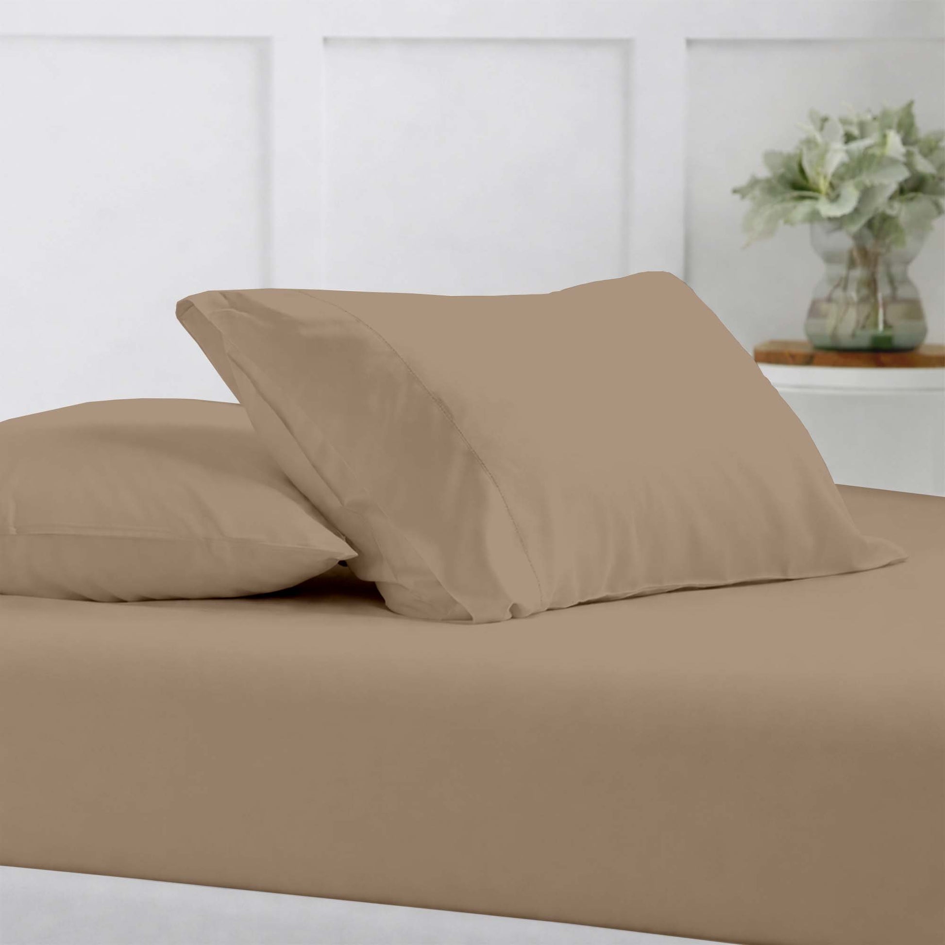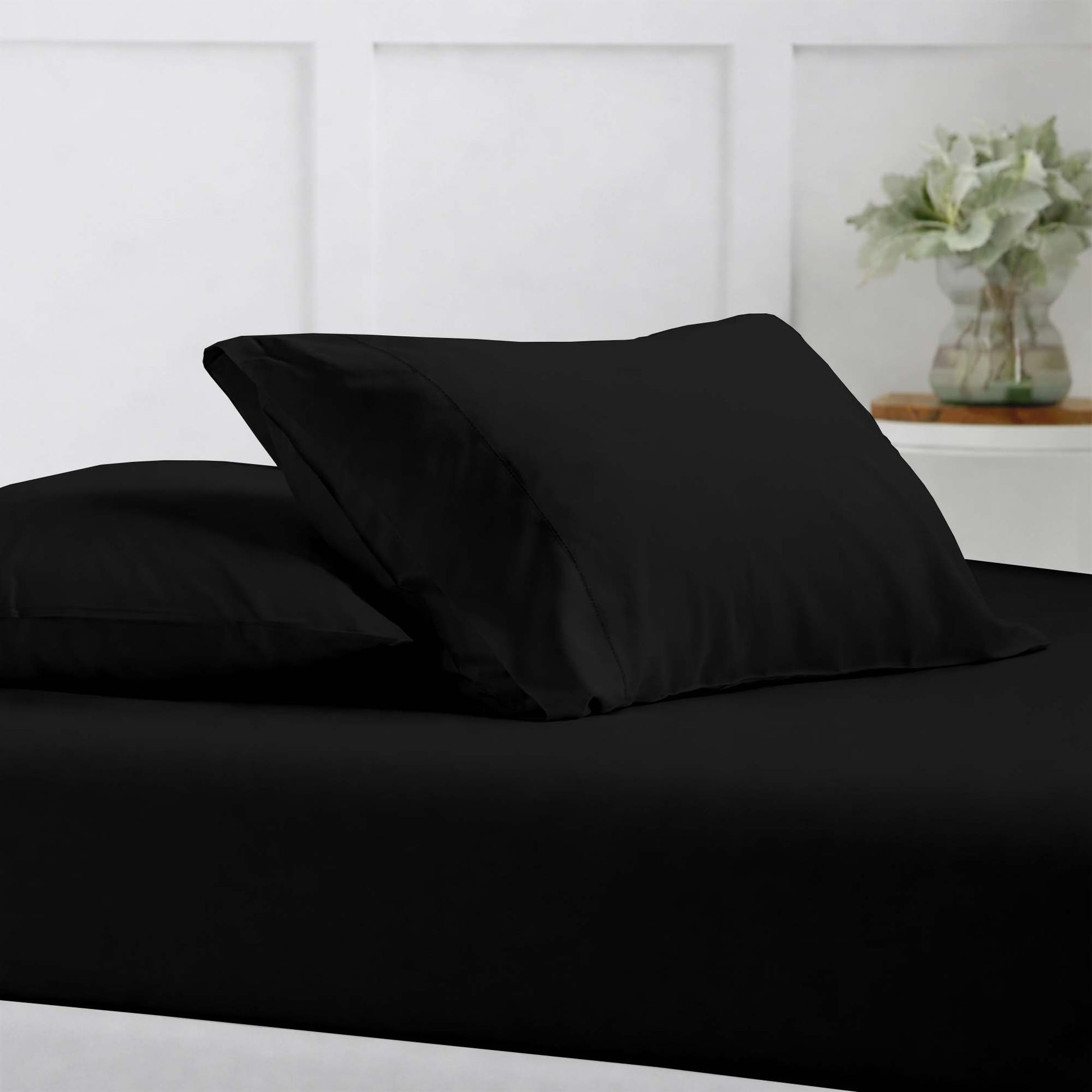 Complete 3-Piece Fitted Sheet Set — includes 1 fitted sheet with 18" deep pocket & 360° all-around elastic for a snug fit, 2 envelope closure pillowcases.