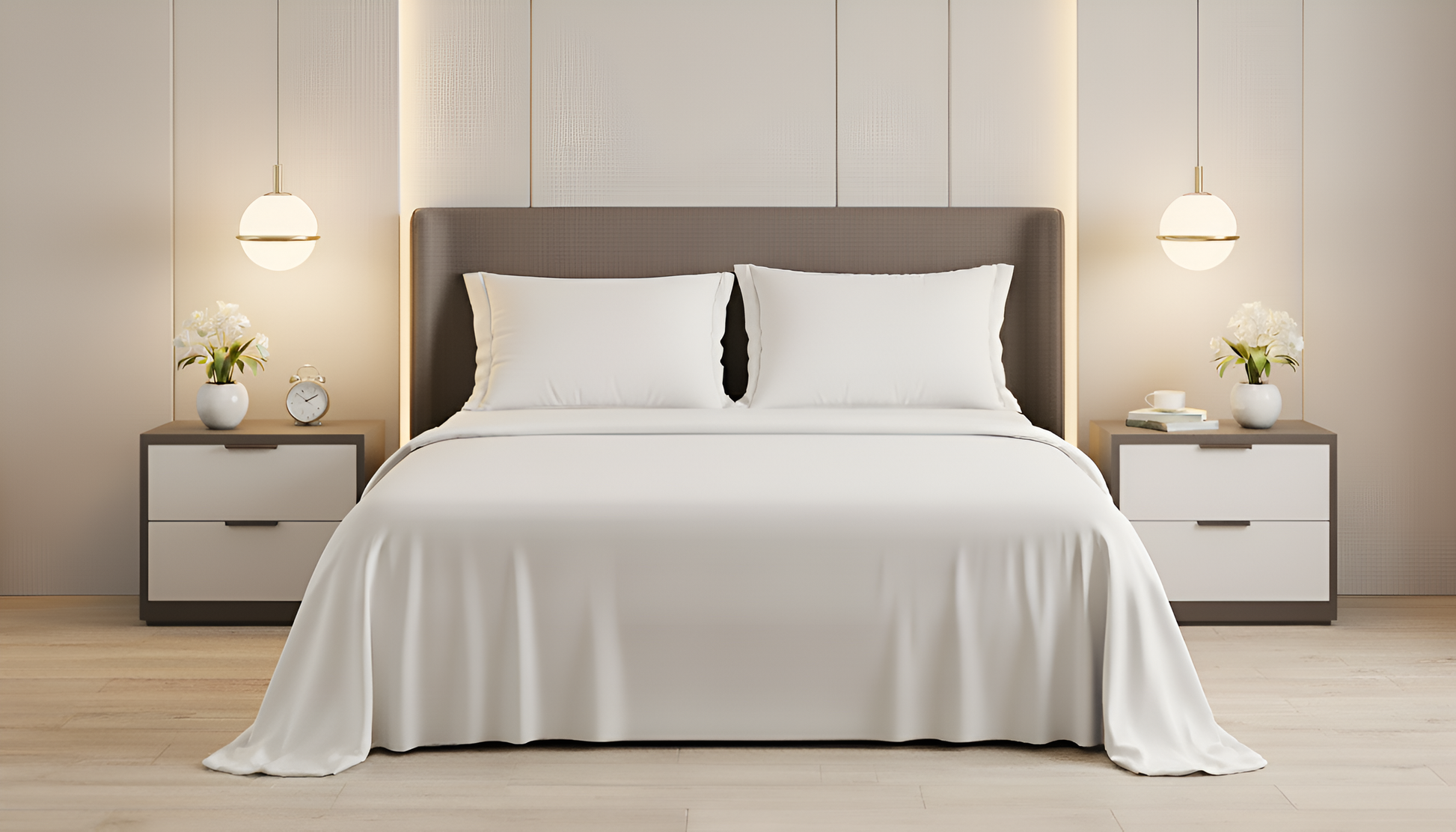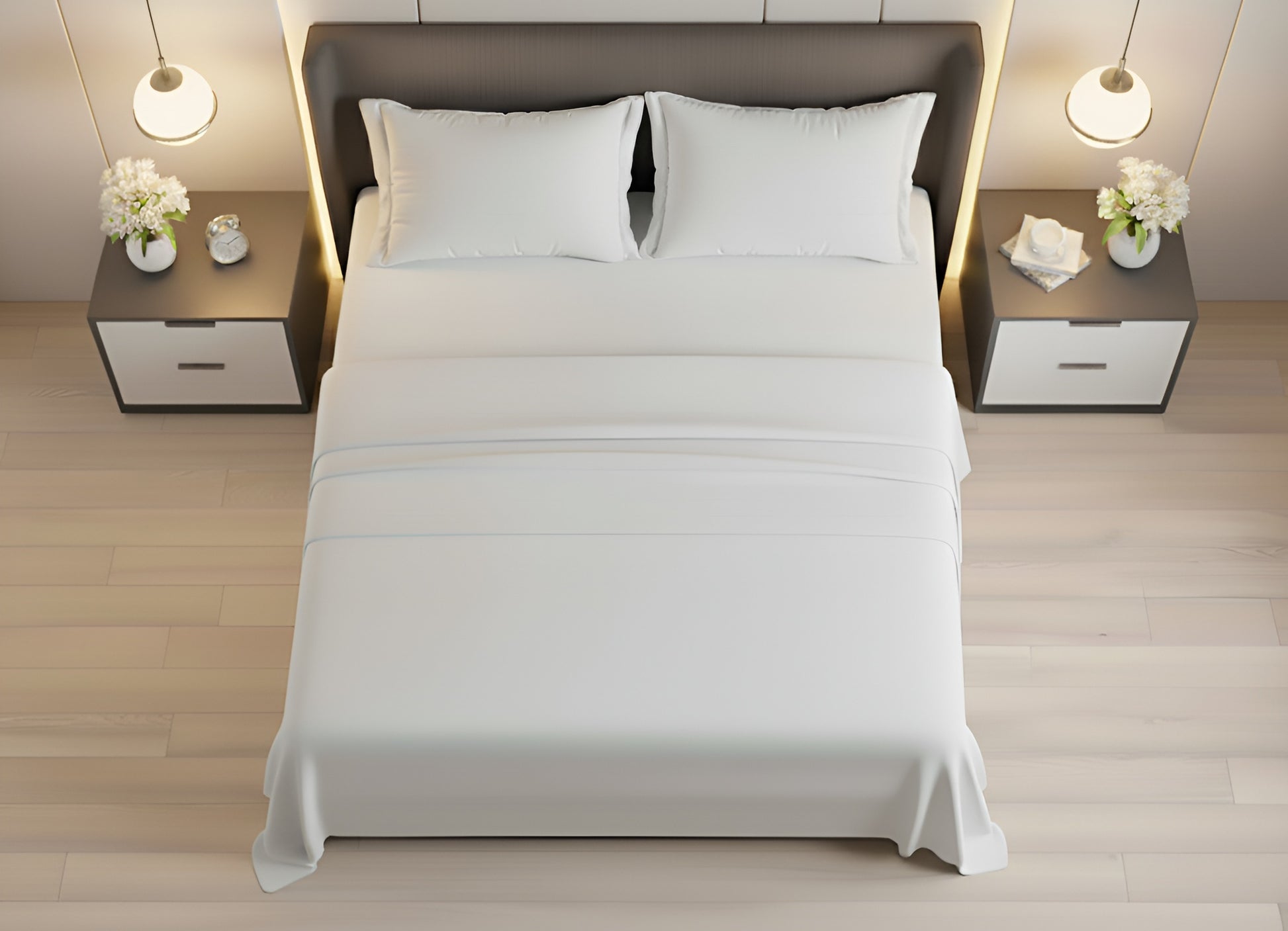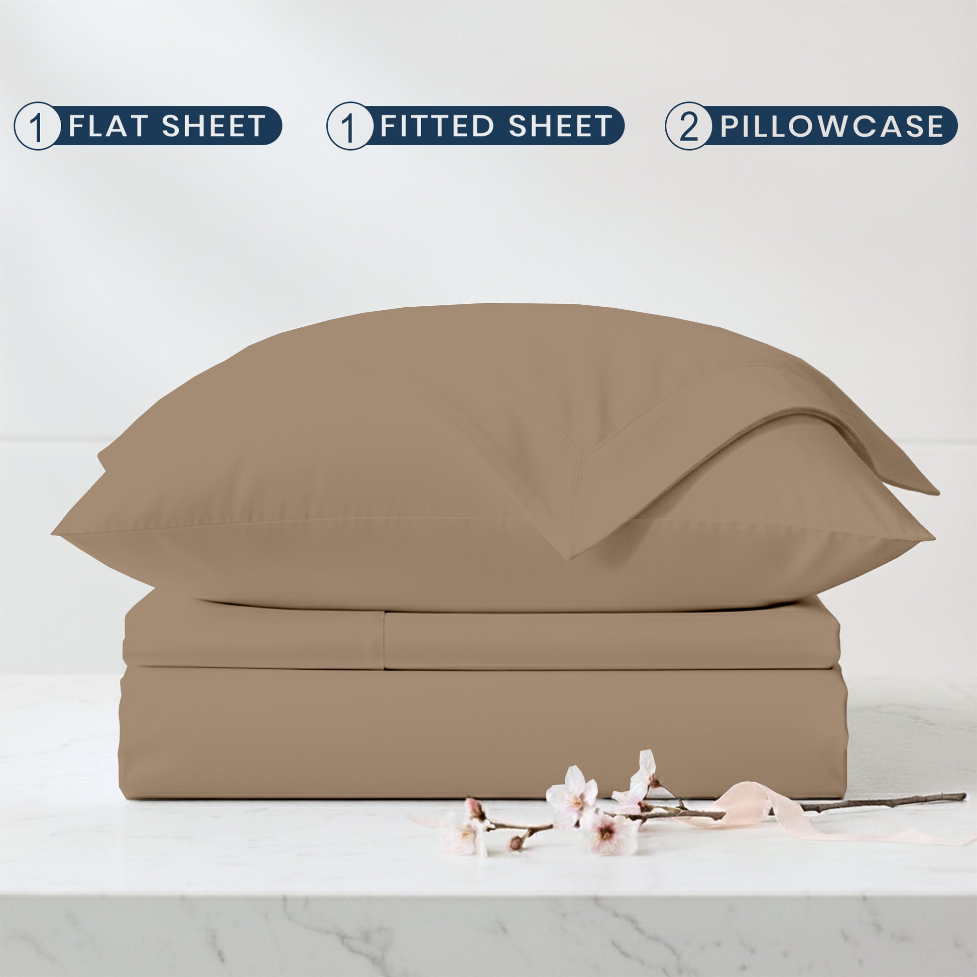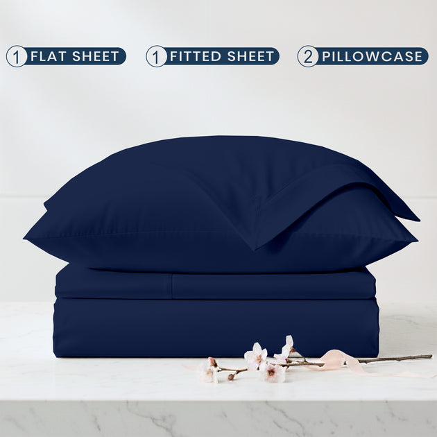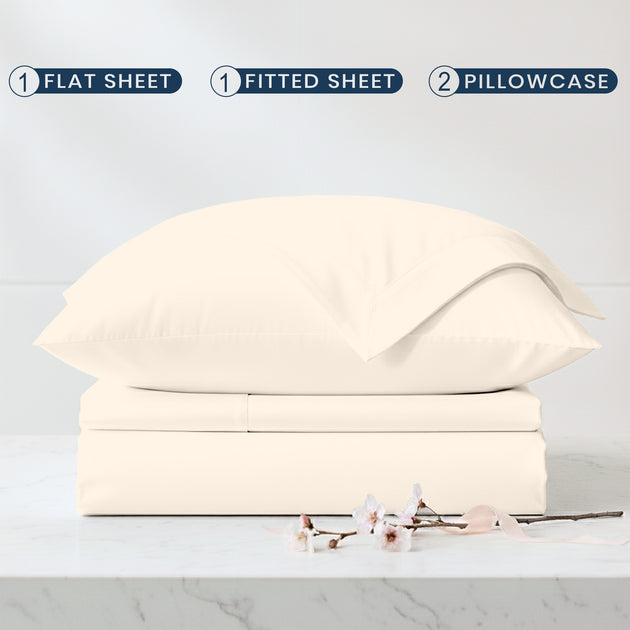 Complete 4-Piece Set – 1 flat sheet, 1 fitted sheet with 15" deep pockets & 360° all-around elastic for a snug fit, and 2 pillowcases with elegant envelope closures.