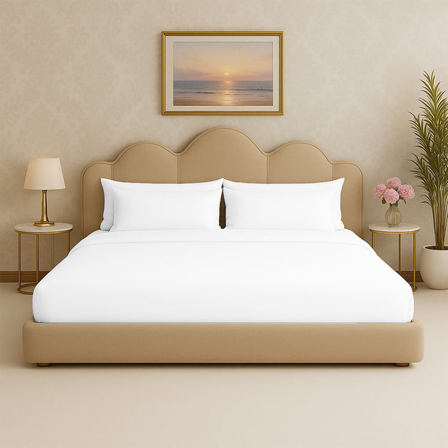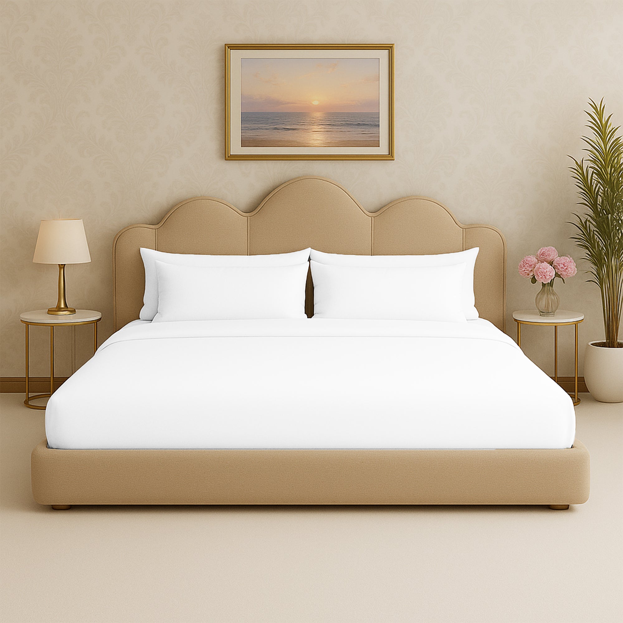 Complete 4-Piece Set – 1 flat sheet, 1 fitted sheet with deep pockets & 360° all-around elastic for a snug fit, and 2 pillowcases with elegant envelope closures.